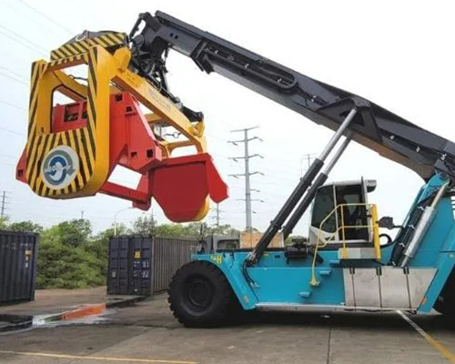 “盒子”以安全可靠的科尼Liftace 4532 TCE5正面吊為基礎,增裝采用鋼材和組件制作的翻轉吊具,可以實現(xiàn)整箱360度翻轉,每次翻轉設計安全起重重量高達35噸,滿足多數(shù)搬運場景,確保了在要求苛刻的散貨碼頭/鐵路沿線環(huán)境中具有可靠的性能,重新定義了散裝貨物的搬運之道。