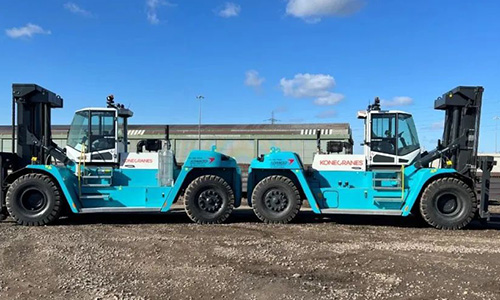 針對客戶的特殊工況需求,科尼對SMV 33-1200 C重型叉車進(jìn)行了優(yōu)化:配備了2.8米的加固貨叉(比標(biāo)準(zhǔn)長80厘米),堅(jiān)固耐用,能夠安全平穩(wěn)處理不同負(fù)載的長鋼產(chǎn)品;采用重型加固門架以及帶有額外支撐滾輪和軸承的托架,確保長鋼起升所需的穩(wěn)定性及運(yùn)輸?shù)撵`活性,幫助客戶更好應(yīng)對業(yè)務(wù)挑戰(zhàn)。