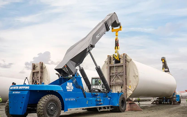 風力發(fā)電機組的核心組件由塔筒、風葉、機艙、輪轂等組成,科尼針對風電行業(yè)的特殊物料搬運需求,將正面吊和叉車產(chǎn)品進行了優(yōu)化,配置屬具,大幅提升客戶搬運效率。